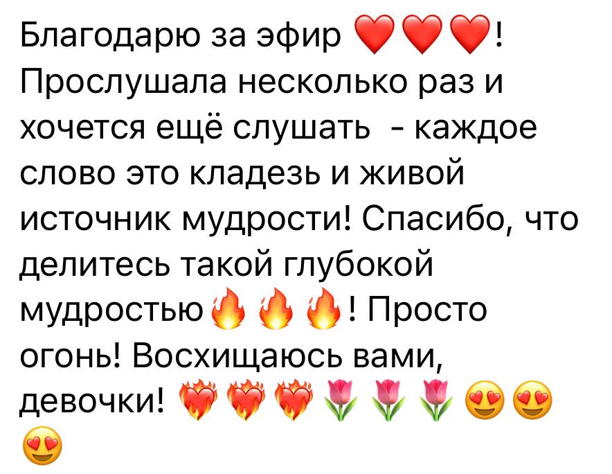 И будем строить пространство, где нет одиночек. Где каждая будет услышана, понята и принята.
